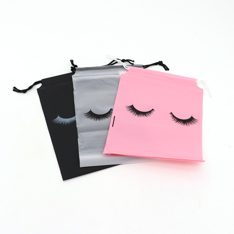 Hot Sale Women's Square EVA Plastic Cosmetic Tool Storage Bag Pink Black Transparent Drawstring Eyelash Cosmetic Bag Beauty Tool